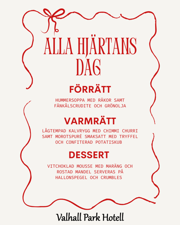 För bokning: Info@hotelvalhallpark.se eller 0431 – 255 20.