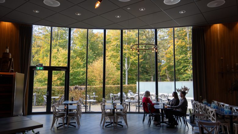 Hotellets restaurant er indrettet i nordisk stil med træ og tegl og ligger indlejret i en fantastisk beroligende parkmiljø. Store glaspartier giver et dejligt lys i lokalet og skaber følelsen af at være ét med naturen. Restauranten har plads til 200 spisende gæster.[/vc_column_text]